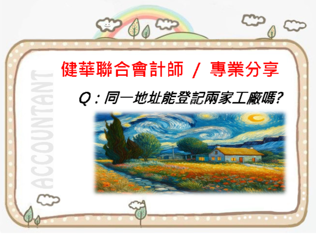 1.無論是經濟部商業司、或是台南市政府、以及各縣市政府,都沒有限制同一個地址不能成立兩家或以上的公司行號。