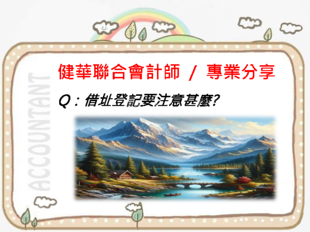 3. 如果部分面積營業,部份仍為住家,那麼會計師提醒您,可以在公司行號登記完成之後,向税務局申請部份面積比例為住宅的用途變更,避免税務局將全部的面積以營業用稅率課稅 /別讓您的合法節稅權利睡著了!